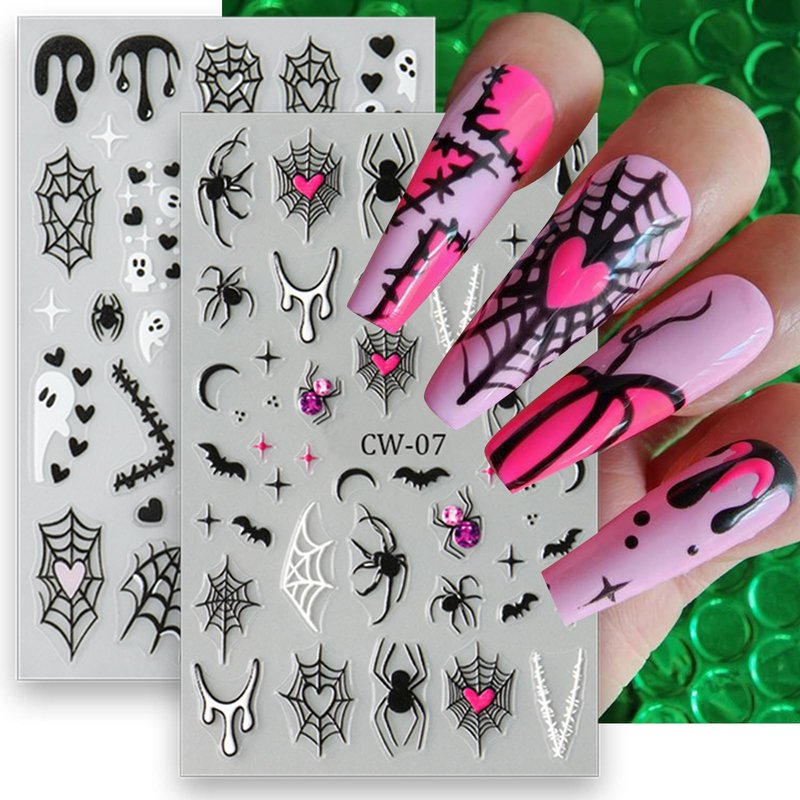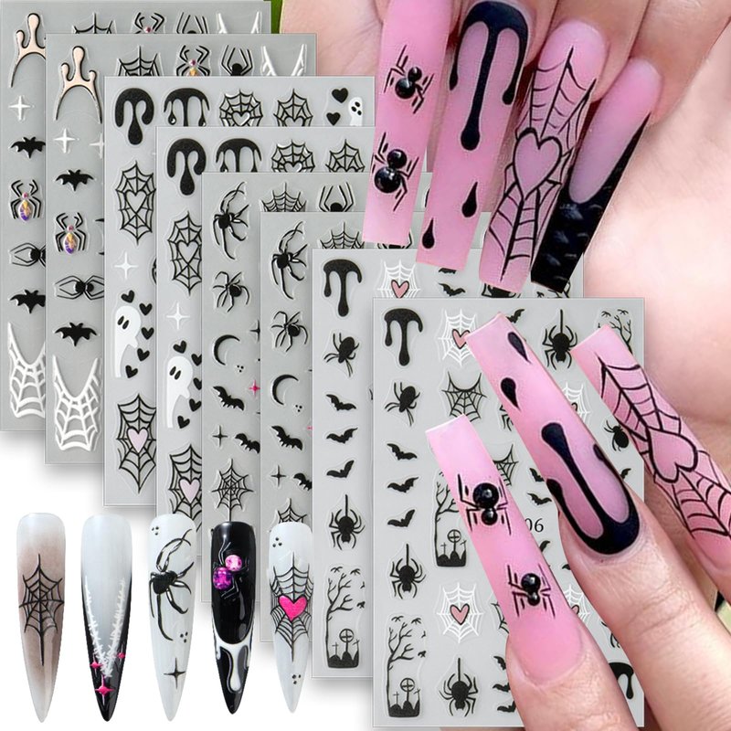 - Excellent Nail Sticker Set: 8 sheets halloween ghost stickers are the excellent fashion accessories.Large number of different patterns for you to use and replace in daily life, spider web nail decals are full of sensuality and elegance, various charming patterns bring you a different mood