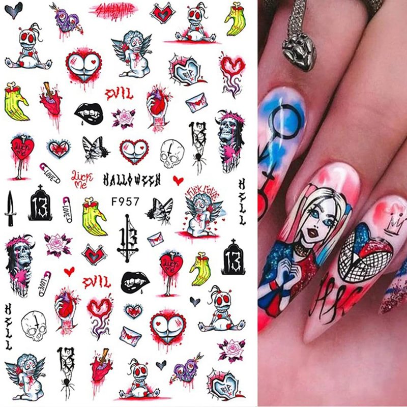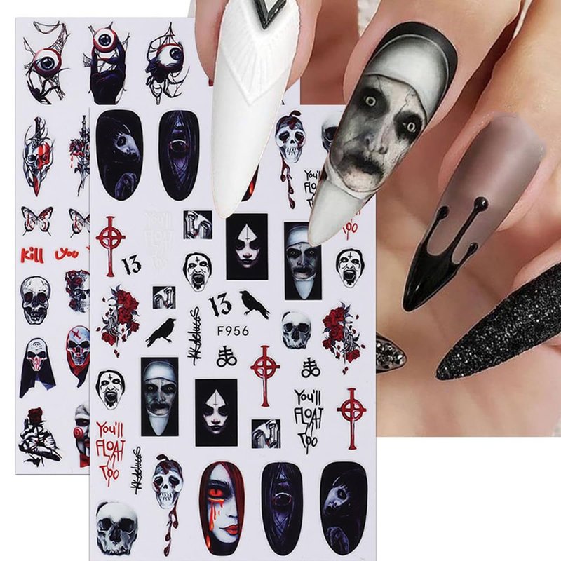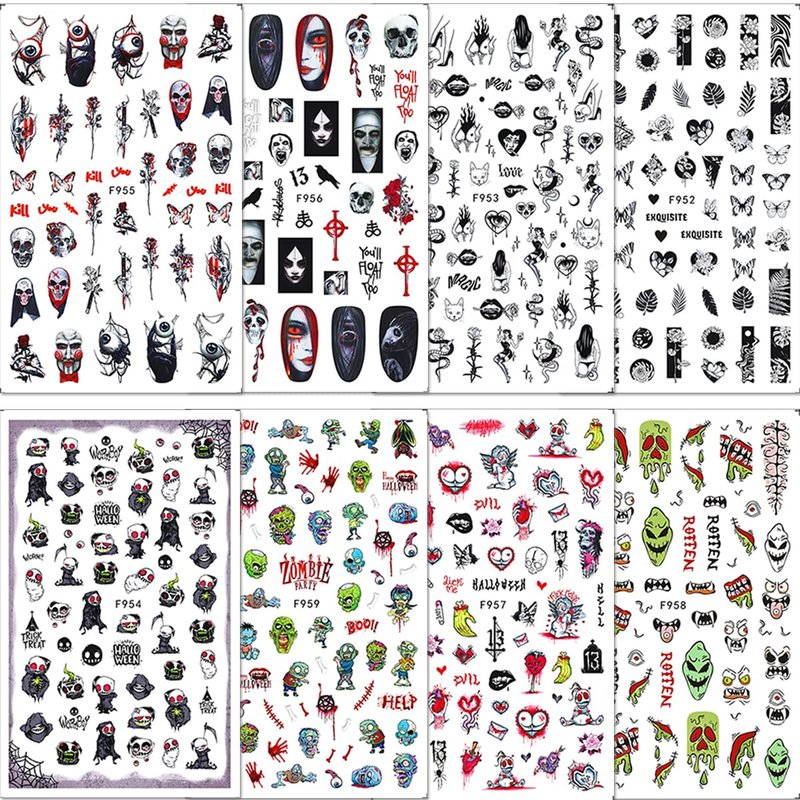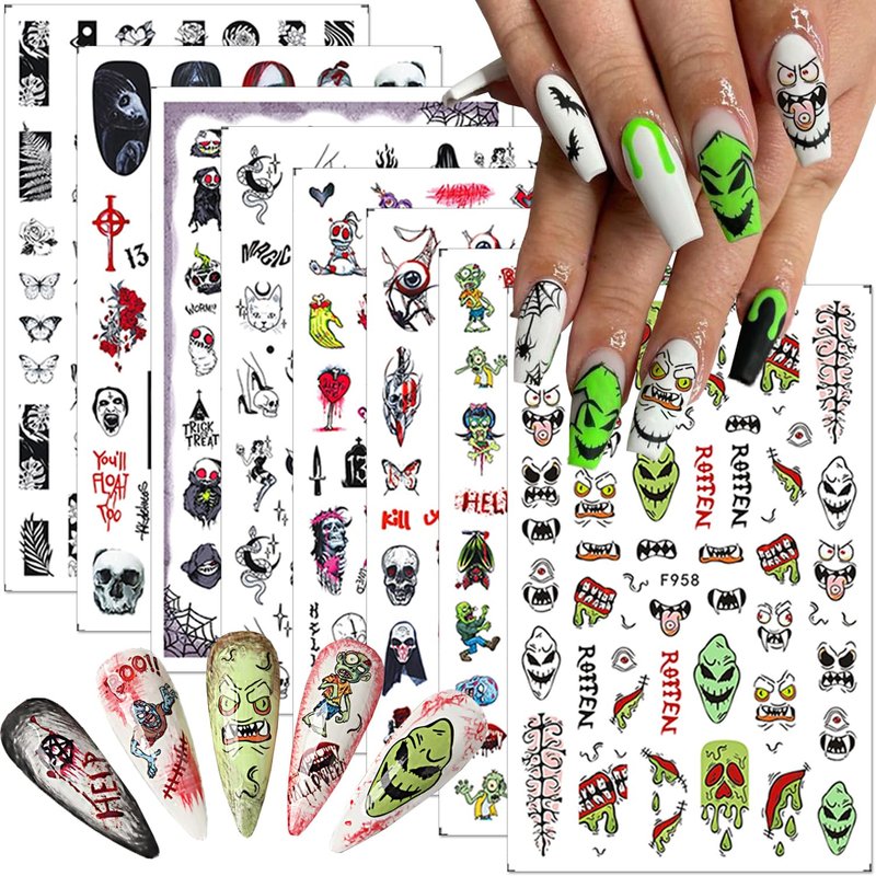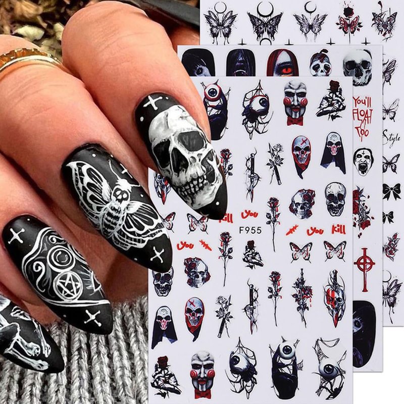 - Halloween Nail Art Stickers Set: You will get 8 sheets Halloween gothic nail stickers are the perfect Halloween fashion accessories. You can choose different patterns to decorate your nails, create a variety of dazzling Halloween nail design.