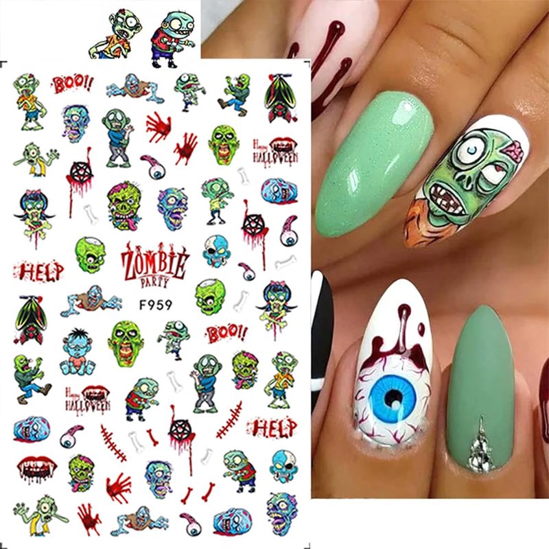 - DIY Halloween Sticker for Nails: Ghost nail art stickers have different patterns such as spider webs, horror ghost, pumpkins, skulls, bone, bloody, eye, etc. which can provide you with a variety of choices and let you use your rich imagination to nail DIY.