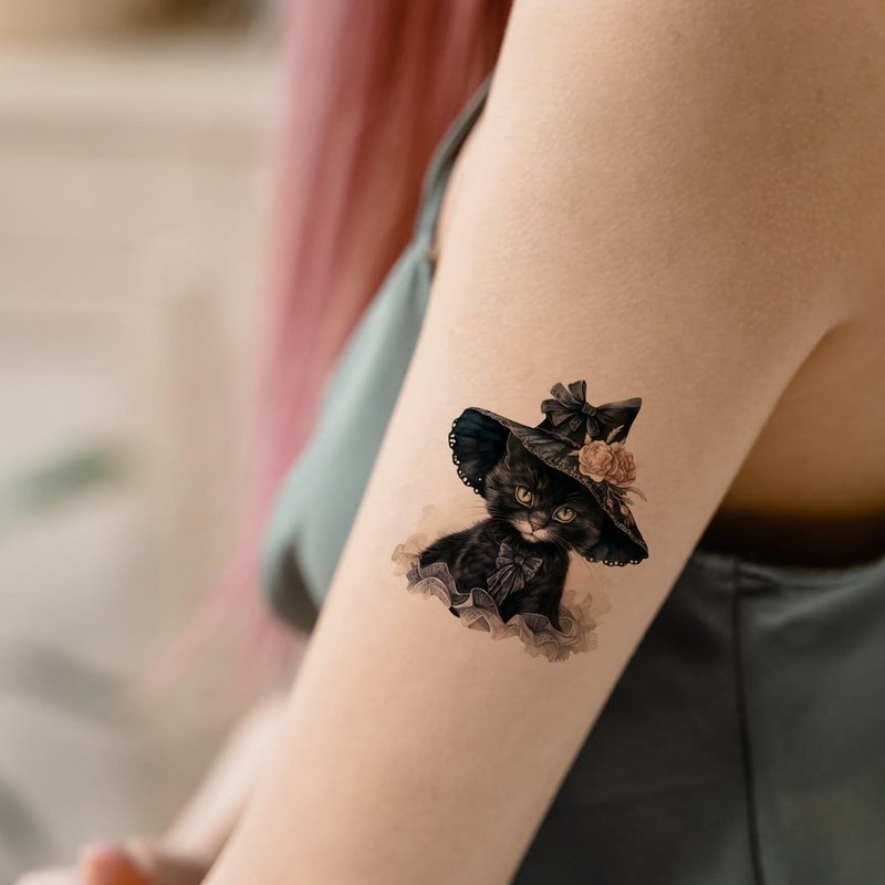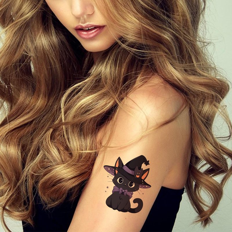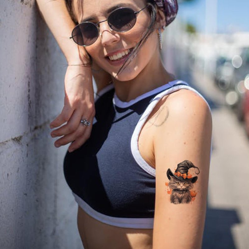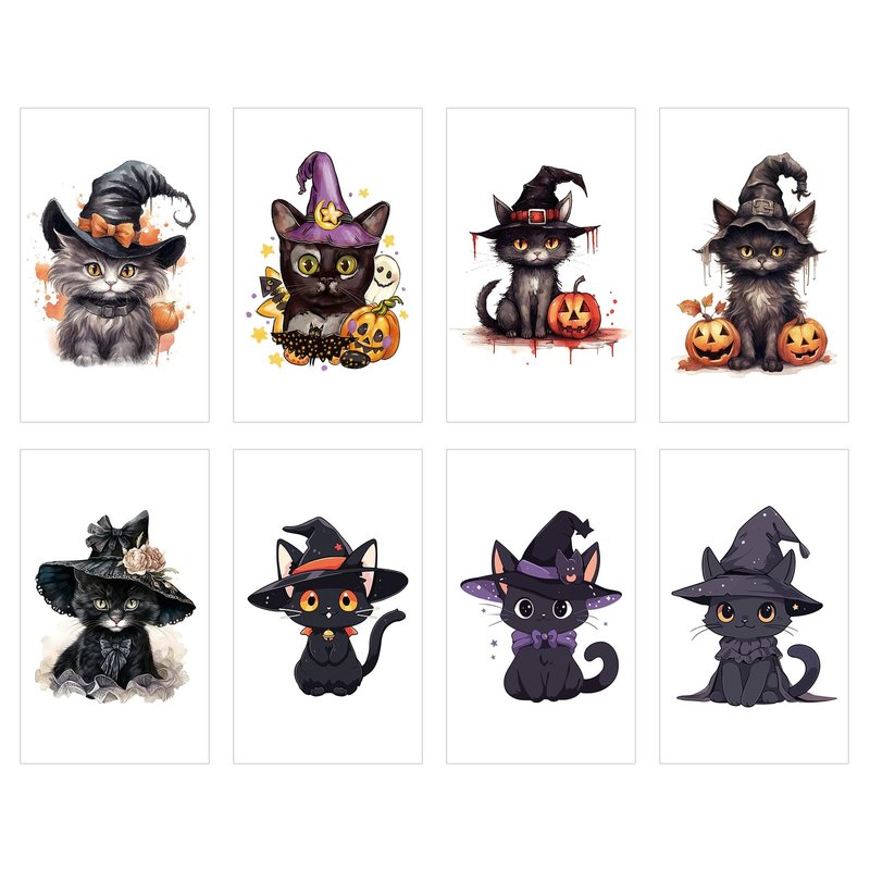 - Halloween Temporary Tattoos: You will receive 8 sheets Halloween cat temporary tattoos. Each sheet measures 3.93" x 2.35". Cat temporary tattoos can be stuck well on your arm, face, hand, or anywhere you like. Suitable for kids and adults.