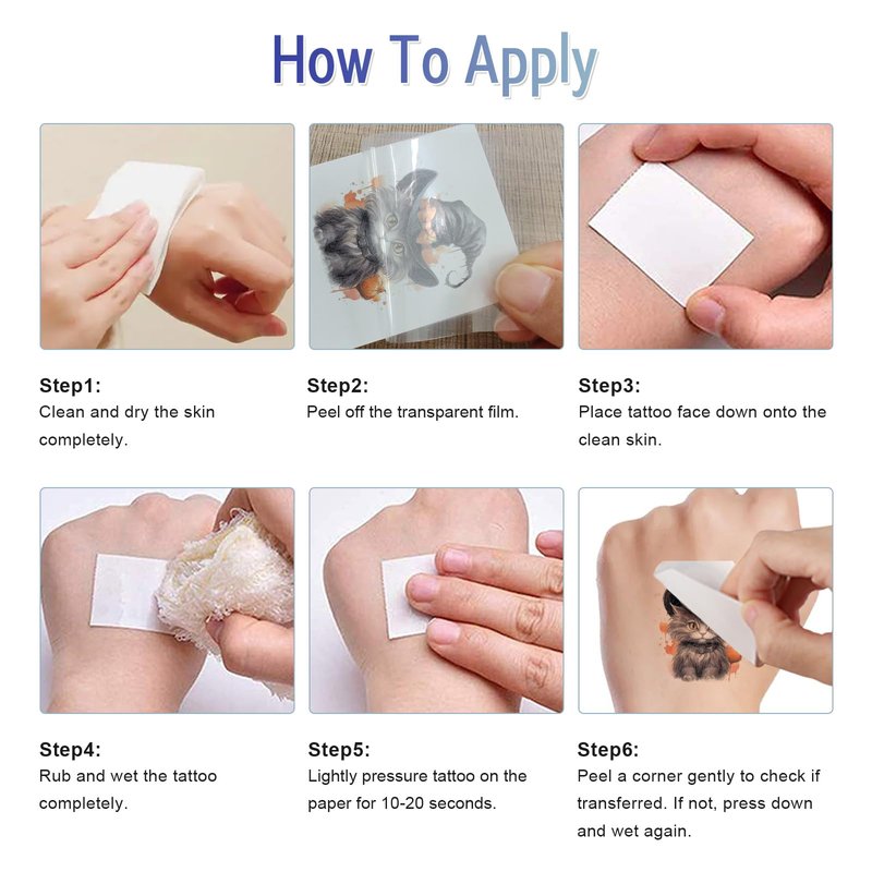 - Easy to Apply and Remove: Choose the pattern you like and then peel off the clear plastic film, place the sheet on skin, dampen with wet cloth and wait a few seconds for it to dry, easily removed by rubbing with body oil or alcohol.