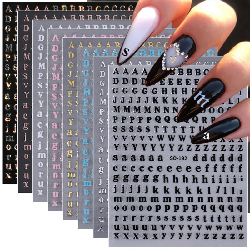 - Letter Sticker for Nail Art: You will get 8 sheets 3d English alphabet nail art stickers decals, gold nail designs decoration, It provides you with a variety of options to give full play to your rich imagination of nail DIY.