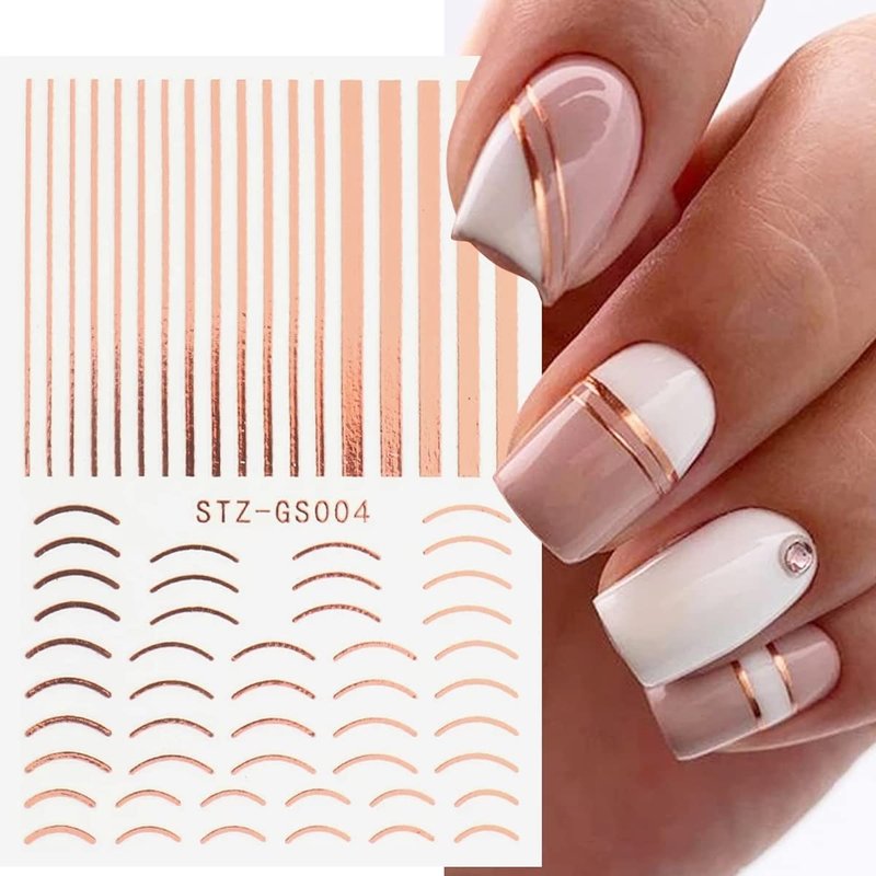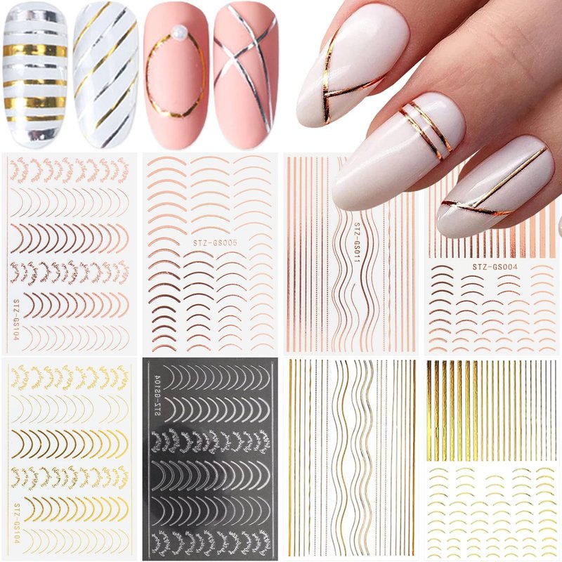 - Quantity: You will get 8 sheets french tip nail art sticker for acrylic nails, metallic line nail decals for nail designs decorations, which can offer you multiple choices, and satisfy your rich imagination of nail DIY.