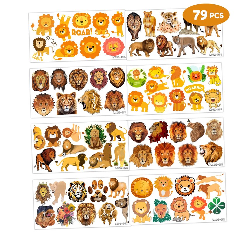 8 Sheets Lion Temporary Tattoo Tattoos Theme Safari Jungle Birthday Party Supplies Decorations Favors Decor Stickers For Men Women Kids Gifts School Prizes Rewards
