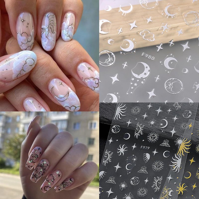 - Package: You will get 8 sheets 3D silver nail art stickers decals, stars moon sun nail designs decoration, It provides you with a variety of options to give full play to your rich imagination of nail DIY.