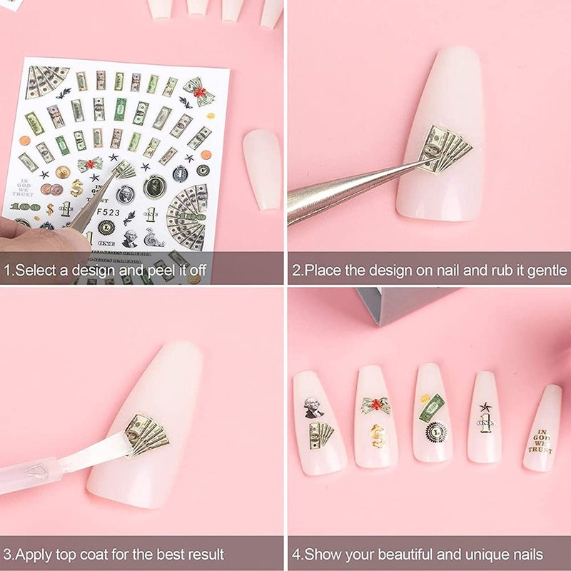- Safe: Money nail decals are made of environmentally friendly materials, non-toxic, not limited to any nail styles, you can use it safely(even for pregnant women).
