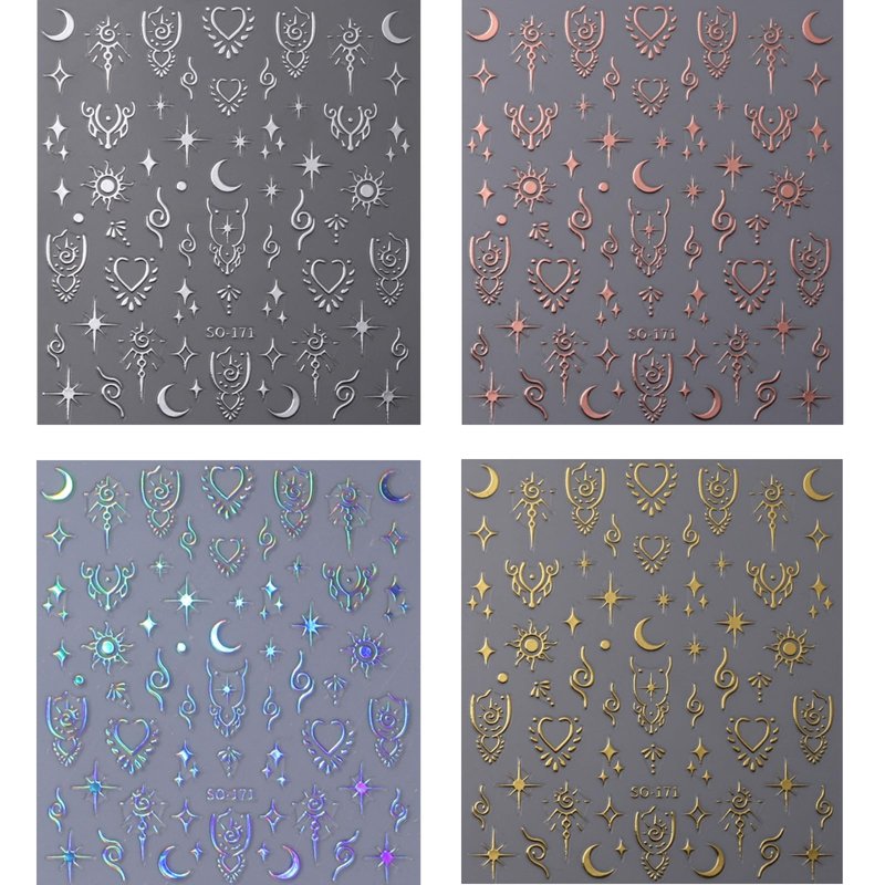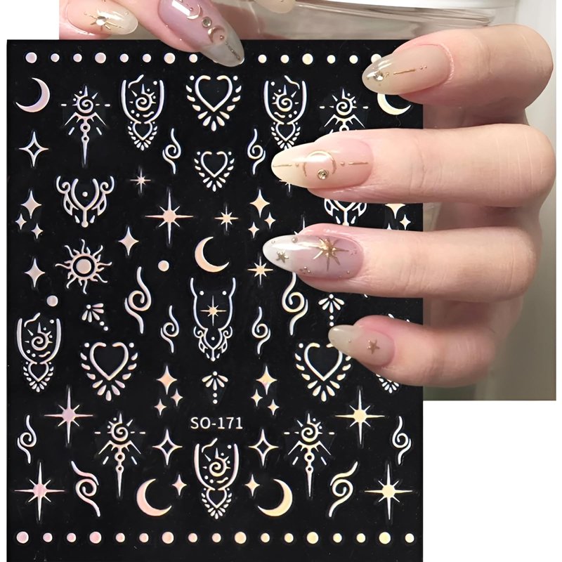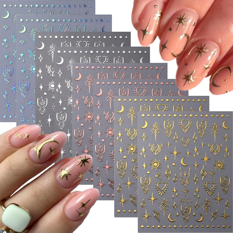 - Gold Nail Stickers: You will receive 8 sheets moon star nail decals.different classic patterns such as star,moon,sun,etc.