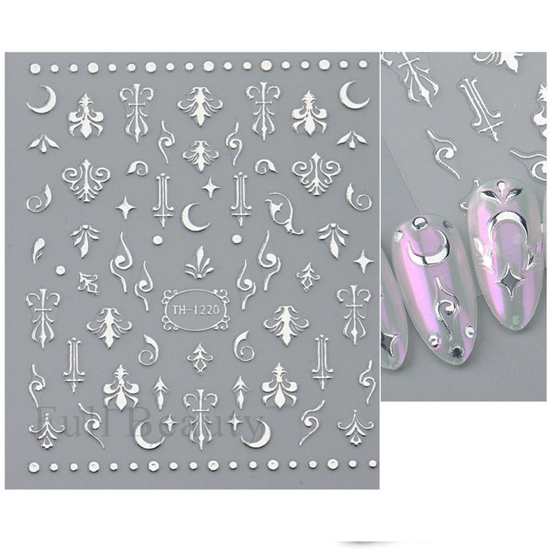 8 Sheets Silver Nail Art Stickers Decals Angel Wings Crosses Nail Stickers Sun Stars Moon Totem Design Nail Decals 3D Self-Adhesive Nail Stickers for Women Manicure Decoration