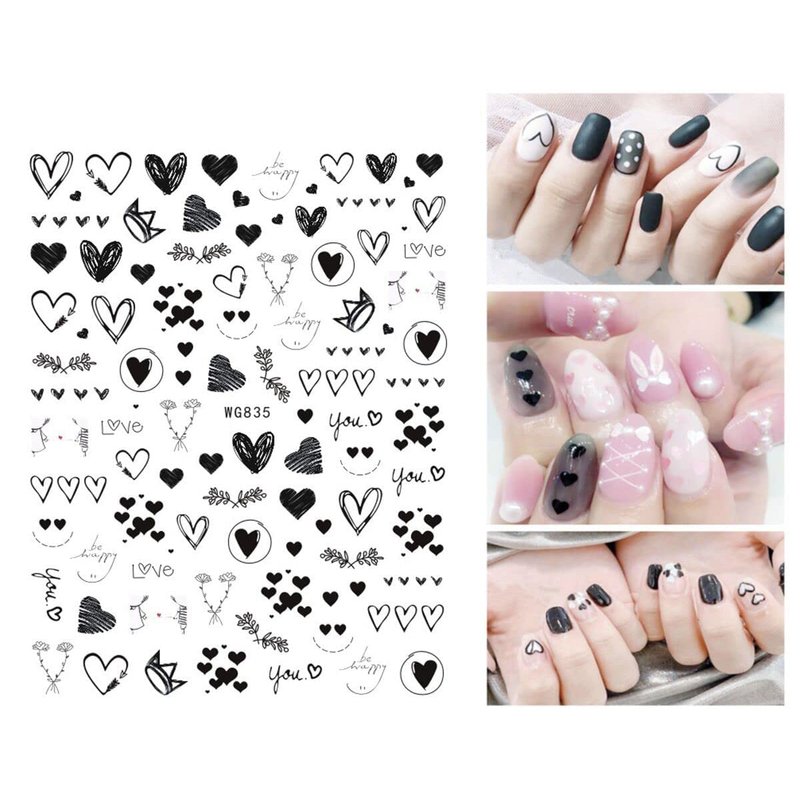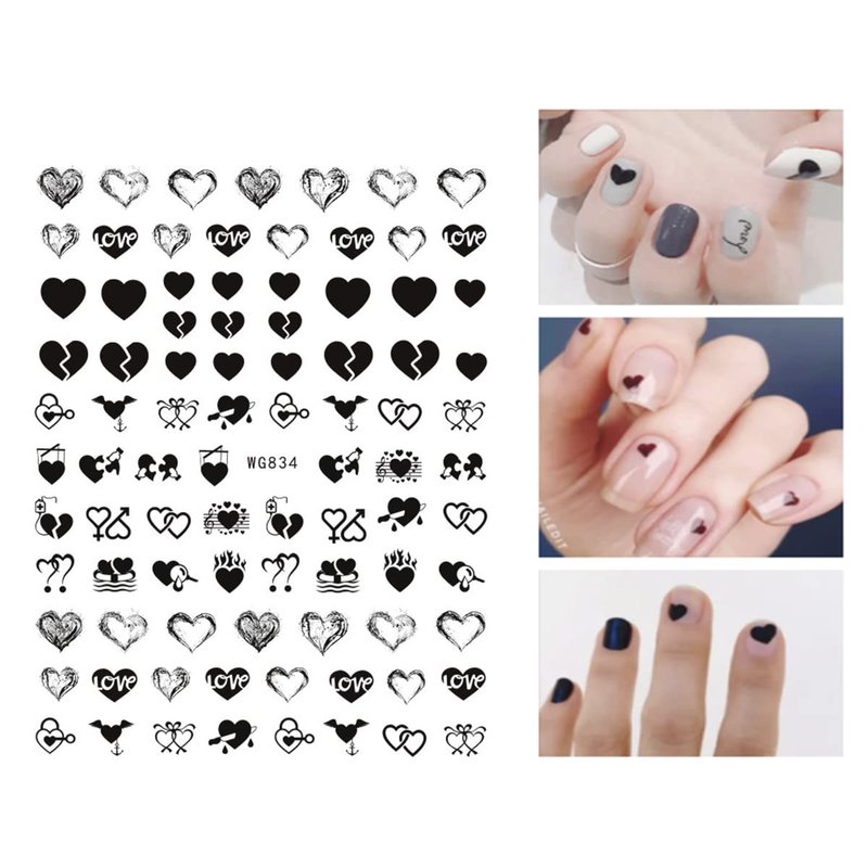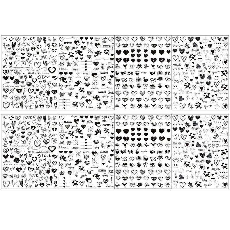 8 Sheets Valentine's Day Nail Art Stickers Decals Self-Adhesive Pegatinas Uñas Black Heart Lover Nail Supplies Nail Art Design Decoration Accessories