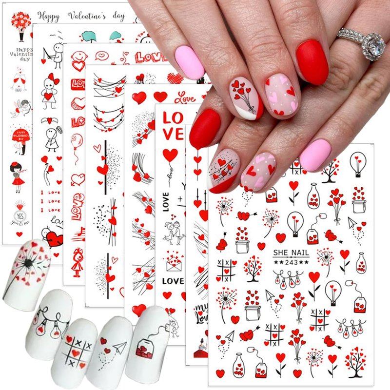 Quantity: 8 sheet/set Valentine's day nail art supplies
