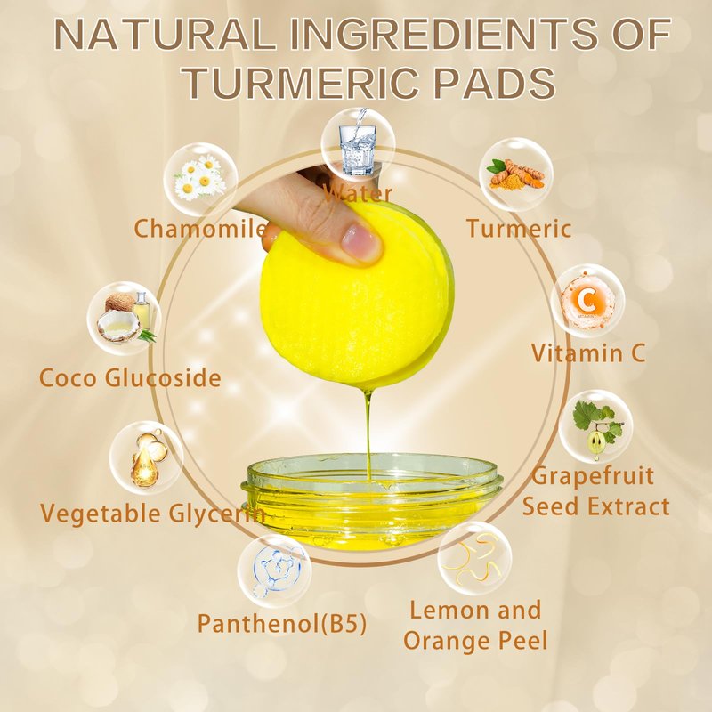 - 【Pure & Natural Ingredients】Turmeric and vitamin C pads enriched with 16% turmeric, 10% vitamin C, chamomile, Lemon and Orange Peel and so on, it can deeply cleanse pores and remove excess oil and dirt from the skin's surface, leaving the skin refreshed and clean.
