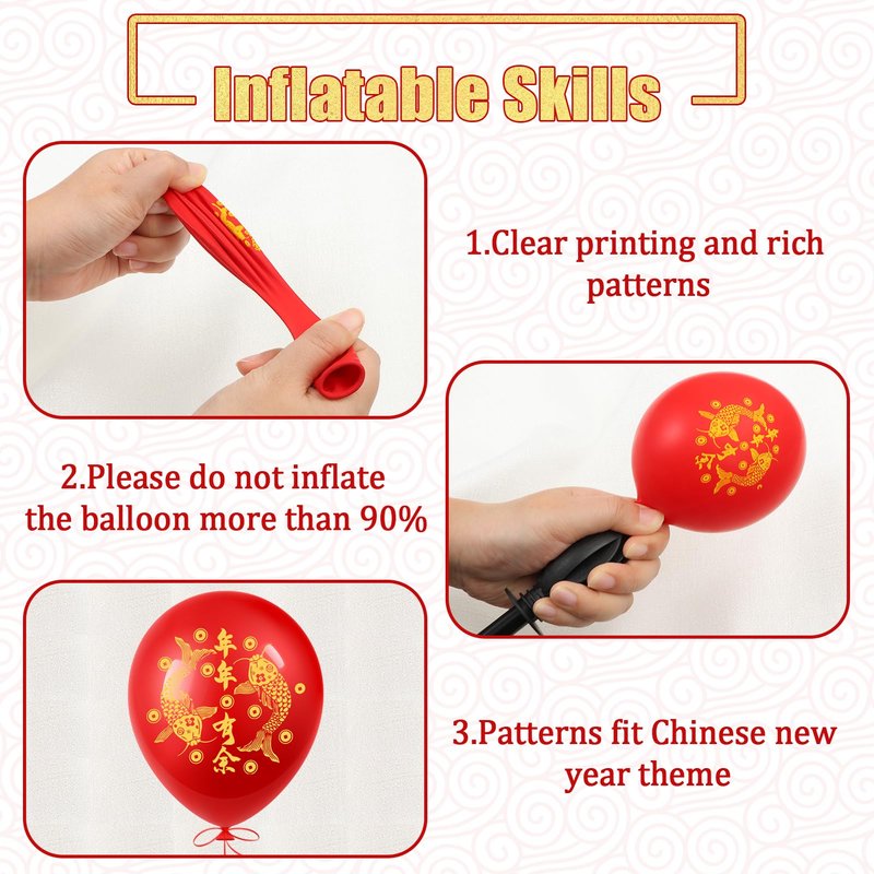 - 🎈Easy to Operate & Use: These Chinese lunar new year balloons can quickly and easily be filled with helium or air to inflate so you can save a lot of energy and time. Please do not fill these new year balloons too full and avoid sunburn, overheating, pointed objects and excessive friction, otherwise they'll burst easily.