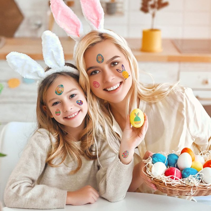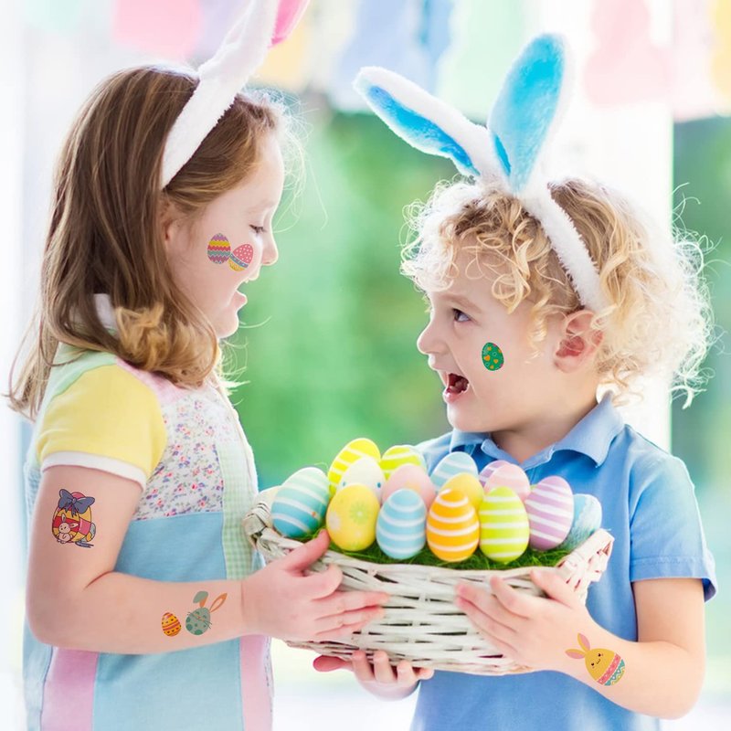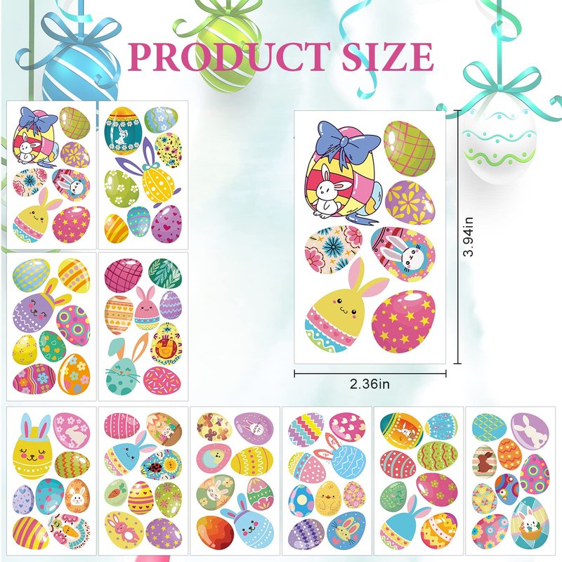 - Easter Temporary Tattoos for Kids: 10 sheets easter sticker feature 80+ pieces different egg pattern, which contains bunny rabbit flower star and other elements. Enough quantity to provide choices for kids boys girls.