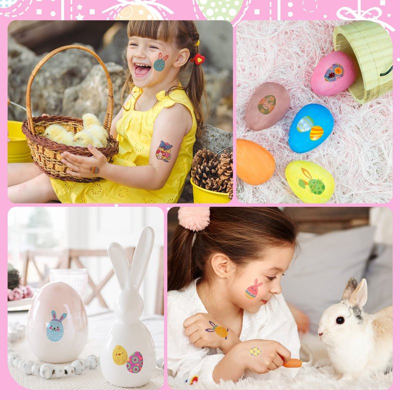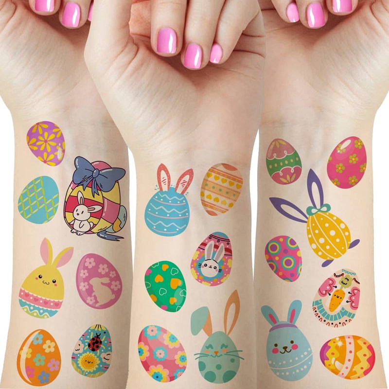 - Easter Party Decorations: The temporary tattoos are perfect for Easter Day decorations, birthday party supplies, party favors, easter egg fillers, easter basket stuffers, party games, DIY decorations, gift, reward and so on. You can also apply them to your body or some smooth objects, such as glass, tile, water bottle, paper, stainless steel, plastic, gift box, mobile phone case and so on.