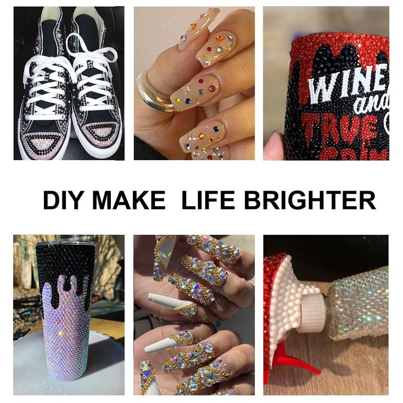 Can be used to Diy decoration Sparkly Shoes, Clothing, crafts, Arts, tshirts, spandex, eye gems, tulle, cup, tumblers, plastic,nail diamonds rhinestones, shirt, nail crystals, ceramic tile, satin type, earrings, gems for makeup, canvas, rhinestones for crafts, wedding veils, metal, wine glasses, bottle, polyurethane boots, styrofoam, polyester, face mask, candles, flower vases, picture frames, wax candles, nail gems and rhinestones, bead bracelet making kit, gems for crafts, lace, tule, face rhinestones, rhinestones for makeup, felt, hats, yarn, crochet, cardstock, dominoe holes, cotton fabrics, motorcycle helmet, wood, leather, wall art, fabrics, nail decorations for nail art, ribbon, phone case, book, computer mouse, resin, plastic coaster, sunglasses, velvet, mesh material, dance costumes, rubber ducks, eye glasses frames, dress, vinyl and paper, hard plastics, drink tumblers, bathing suits, nails, craft gems, Shoes, Clothing, glass cup, eye jewels rhinestones, Silk, denim, lycra, wool, linen, paper, Daruma. Ideal for making unique birthday, christmas, thanksgiving gifts for family, kids, friends, lovers, girls.