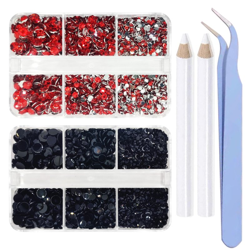 8000 Pieces Red & Black Non Hotfix Flat Back Gems Round Resin Rhinestones Kit 4 Mixed Sizes(2-5mm) with Picking Pen and Tweezer for Nails Crafts Makeup Eyes DIY Christmas Gift Clothes Phone Bottles