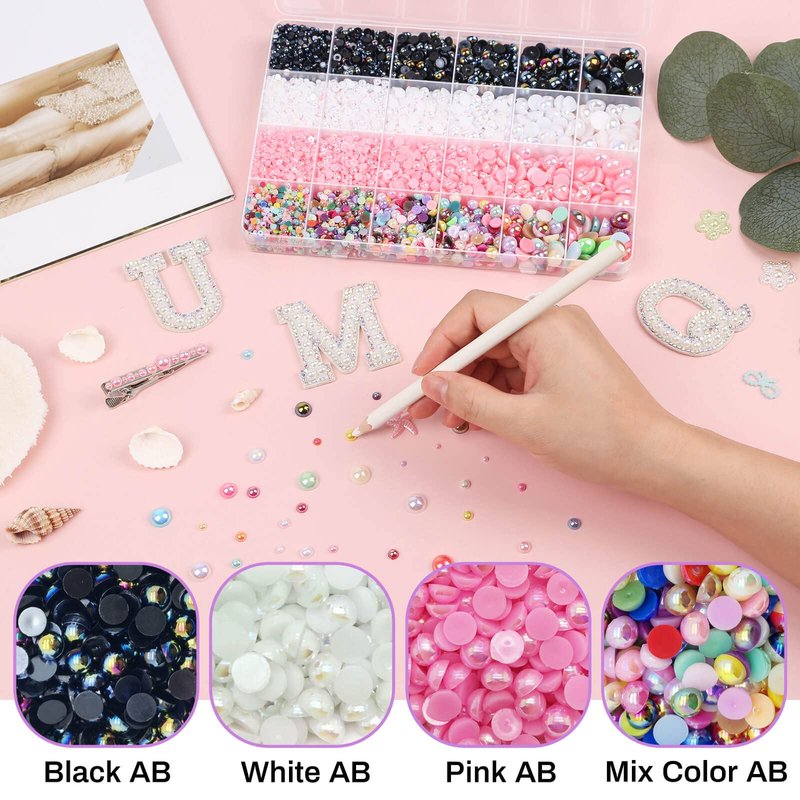 - Multi-colors & Feature Material: With AB white, AB black, AB pink, mixed color, these round flatback half pearls beads are made of non-toxic & superior ABS, which makes their surface shiny, and they will not easy to get dirty