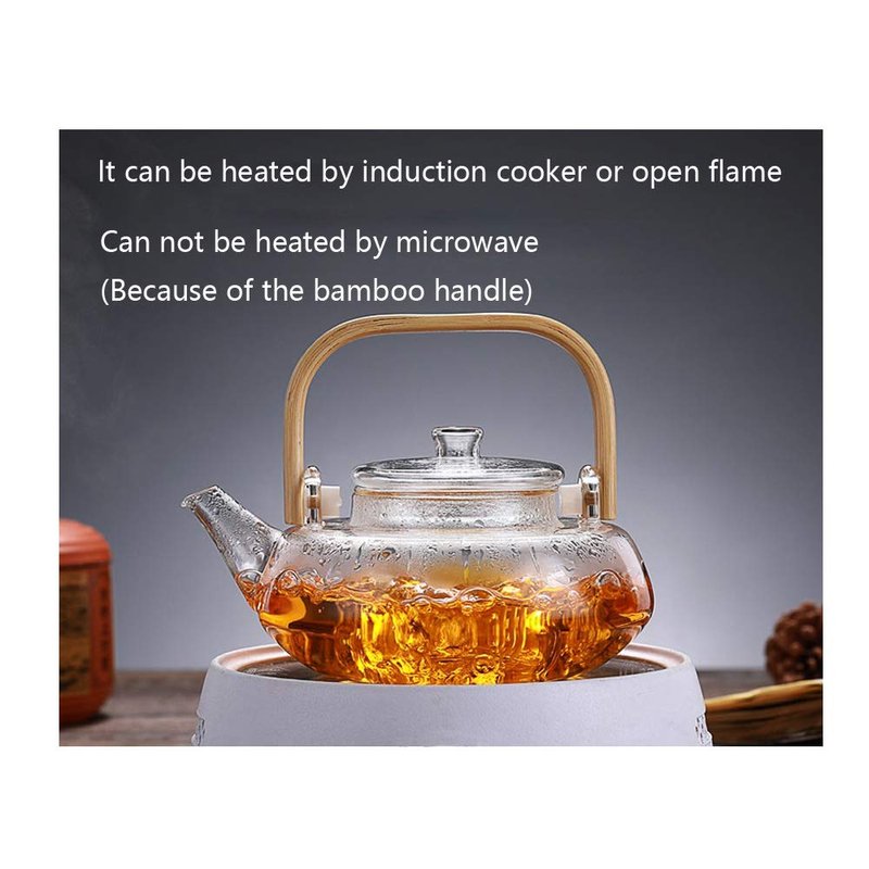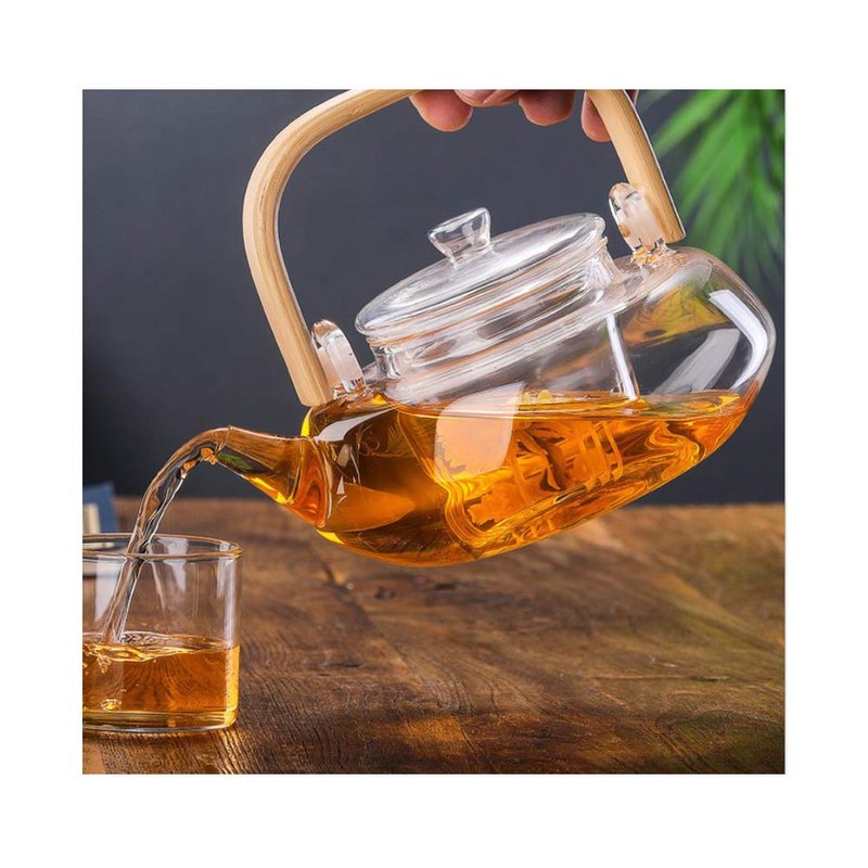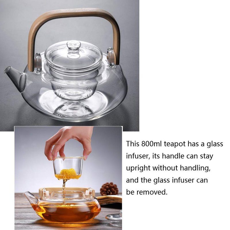 800ml Glass Teapot With Glass Infuser, Teapot With Strainer For Loose Tea, Safe On Stovetop, Tea Pot With Bamboo Handle (800ML/28oz)