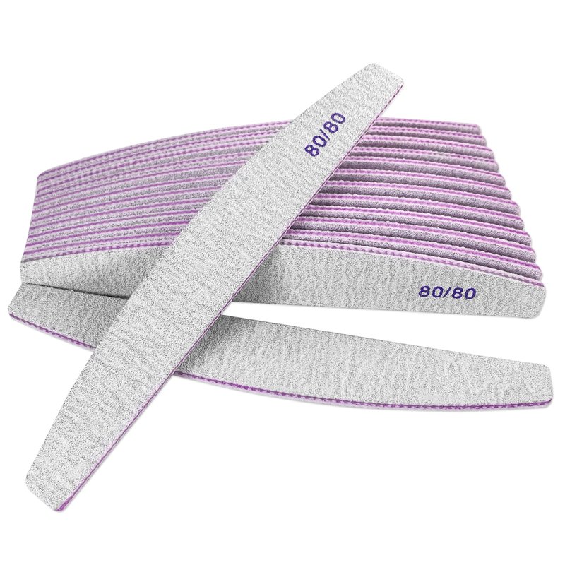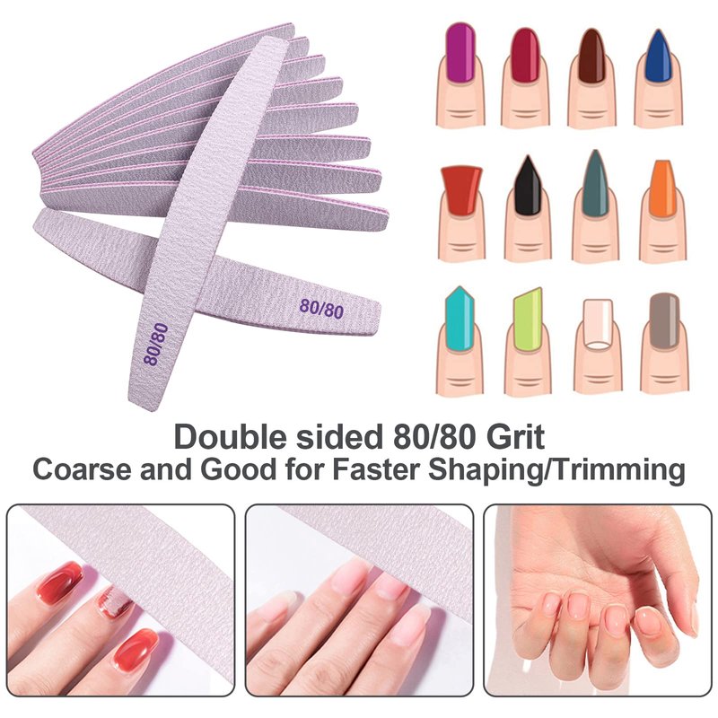 - Ergonomic Curved Shape and Handy Size: Our nail files 80/80 are designed with a handy size of 7.1 inches long and a halfmoon/arc shape and double sides, so they are easy to hold and use; The wider size design makes them more effective when shaping and buffing nails, and the convenient size of 7.1 inches is very portable, making them ideal to be carried in your handbag or suitcase;