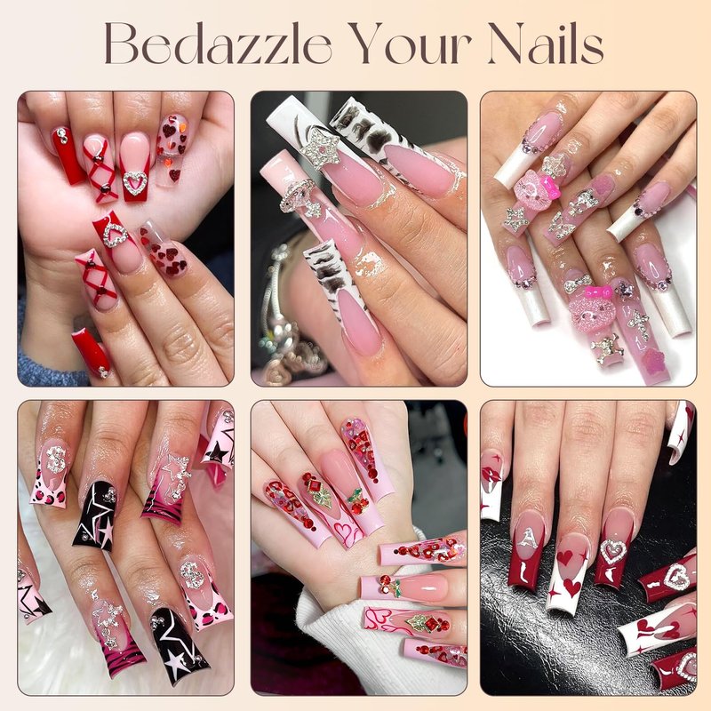 - ✨Wide Application -- Our sparkling nail charms not only can be used for nail art decor, but also can be applied to decorate your clothes, computers, phones, shoes, bags, craft, guitars, hats, hair clips and so on. Bedazzle your life.