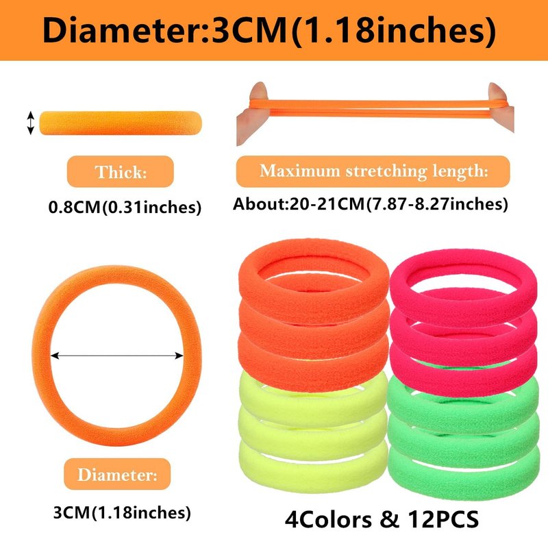 - 【Step Back into the Retro 80s 90s in Style】 Elevate your retro look with 3 pairs of vibrant earrings. 12Pcs 80s bright scrunchies for hair elastics. Elevate your retro wardrobe.Perfect for any occasion like a fun 80s party, workout costume, glow party, rave or cheer team.