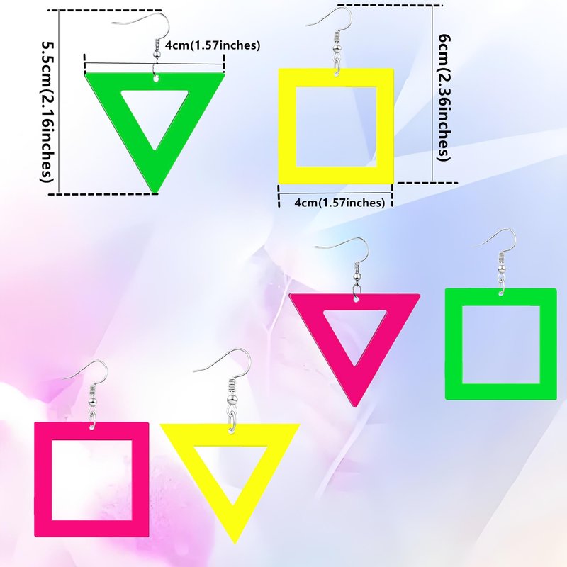 - 【80s Colorful Retro Rock Pop Earrings and Hair Scrunchies Occasion Applicable】The perfect retro party favor for any music or 80s inspired themed event. These funky earrings are fun accessories for concerts, beach bashes and parties of all kinds. Use these cool earrings and hair scrunchies as party favors for a fun surprise!
