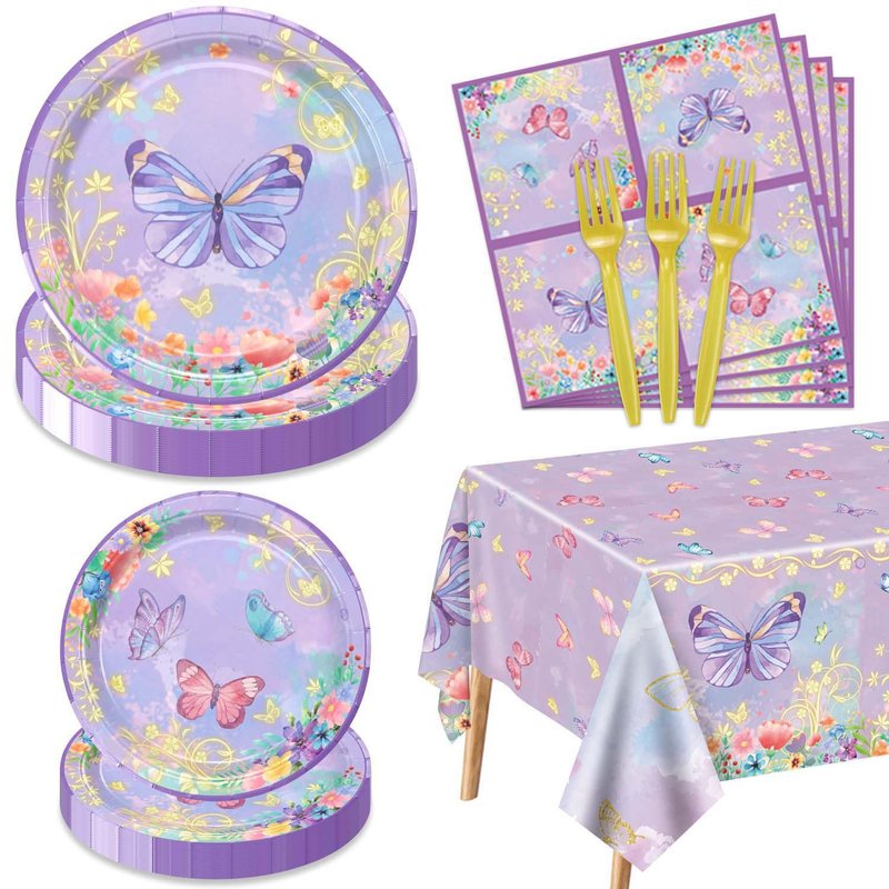 - High Quality - Grade paper for butterfly party tableware set is environmentally friendly, non-toxic, and not folded or torn, so you don't have to worry about breaking and dropping your food. Quality thick PE for tablecloths, lightweight and portable, waterproof, and sturdy.