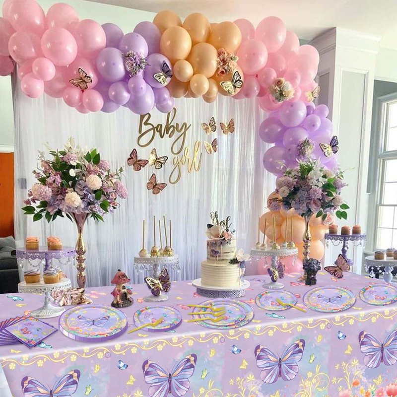 - Exquisite Design - Our butterfly decorations are printed on a vivid purple background with many different shapes of butterflies dancing among the flowers. These romantic and bright colors leave an unforgettable memory for your guests!