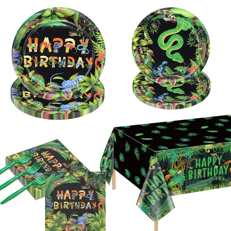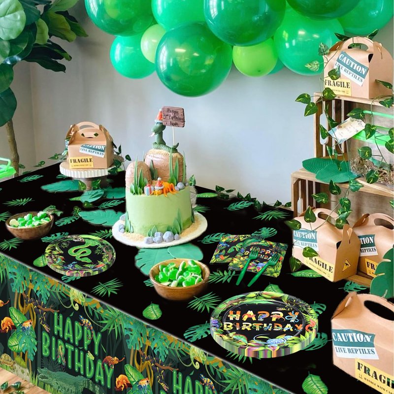 - Applicable Occasions - Our reptile party supplies can be served for boys' and girls' birthday parties, baby showers, jungle party decorations, wildlife parties, forest themed parties, animal birthday party decorations, reptile theme birthday parties, swamp animal theme parties, green-theme parties, or any other relative parties.