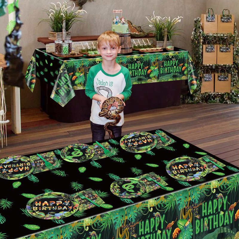 - High Quality - Reptile birthday plates and napkins are made of thick paper, lightweight, and safe. Tablecloth is made of PE, which is waterproof, durable, and stain-resistant.