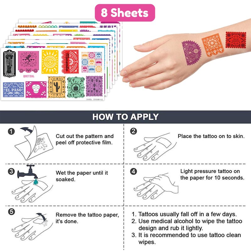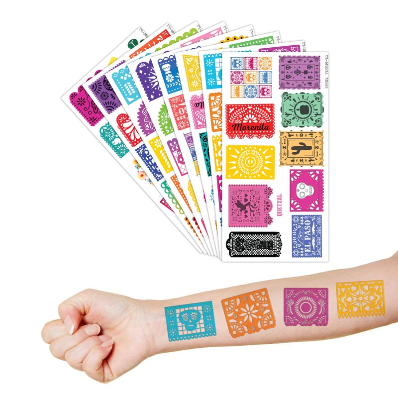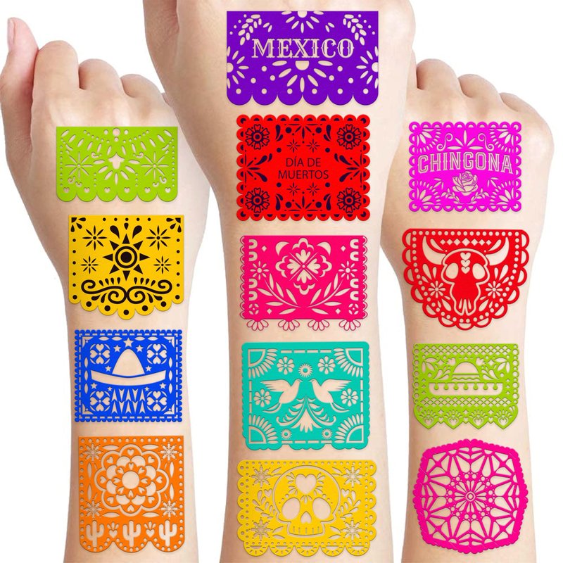 - 🌶️GREAT MEXICAN DECORATIONS FOR PARTY:These MEXICAN tattoos are made with diverse designs in various hues. The colorful and bright colors make your party beautiful and stunning, and they generate a fantastic festive attitude for birthdays, baptisms,weddings, retirements, Fiesta, Cinco de Mayo, MEXICAN independence day and more.