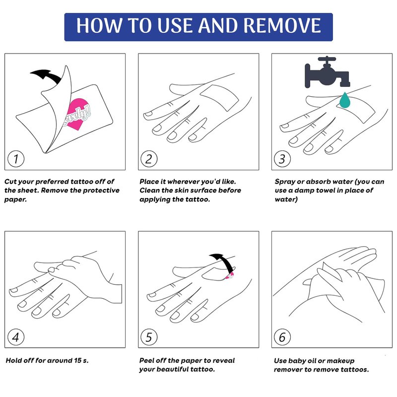 - 💍 EASY TO USE AND REMOVE: We have separated the tattoos, you just need to tear off the tattoo you want, then take off the backing paper, put it where you want it, wet the area with a damp cloth or a little water, wait 15 seconds then remove the paper and you have a beautiful tattoo.