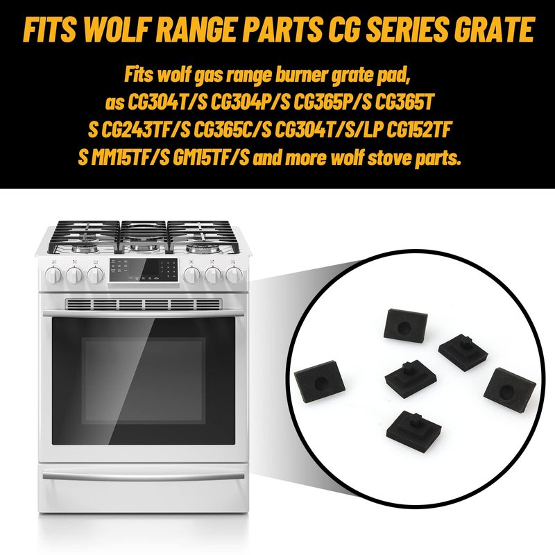 - 【High Quality Grate Foot】: Our wolf grate feet high temperature resistant, corrosion resistant and durable, wolf grate feet made entirely of high heat silicone rubber, The wolf burner grate rubber feet is a black rubber part which attaches underneath the grate in order to protect your stove top from being scratched, which it does by cushioning the grate on your wolf gas stove parts. other stove top burner grate foot that are made from standard rubber or hard plastic without heat resistance.