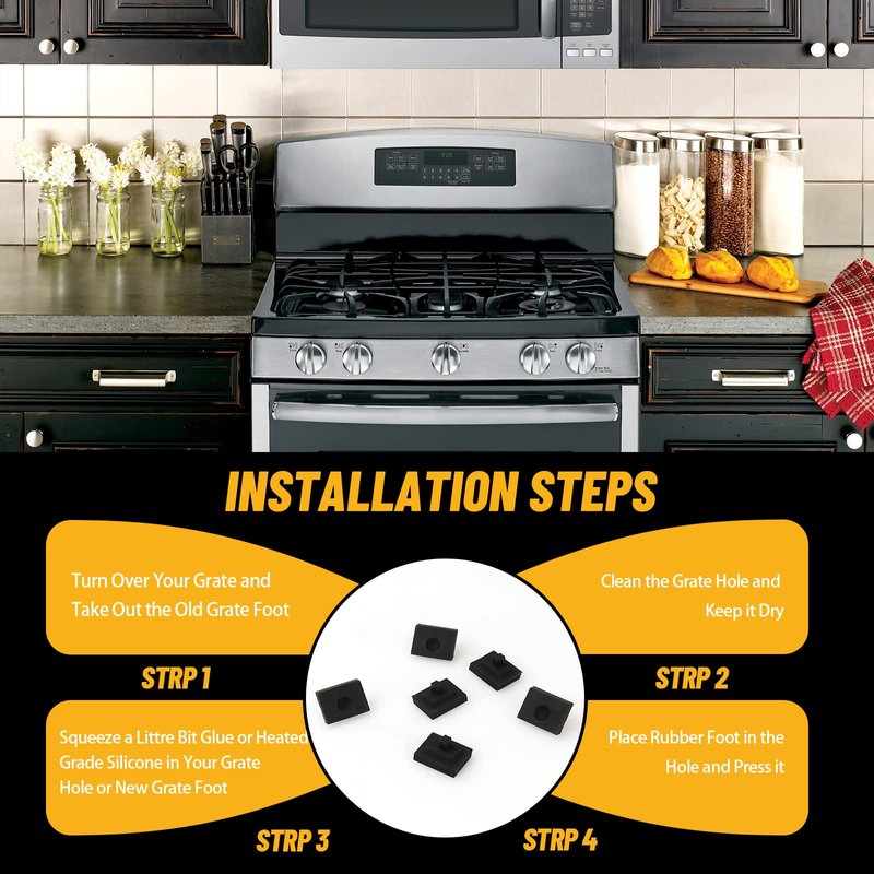 【Please Note】: It is recommended that you can use a small amount of glue or heated grade silicone on your wolf range grate rubber foot to fix the position of the feet.