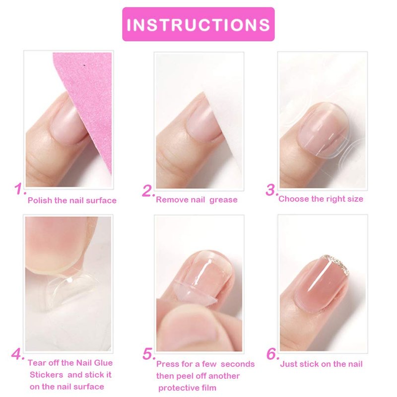 - 【 Simple to Use】Just polish and clean the nail surface, choose the correct size of nail glue, then stick it on the nail and peel off the film, stick the fake nail and press for 15 seconds to get the perfect nail art.