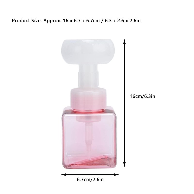 - FLOWER SHAPE FOAM BOTTLE DISPENSER: The flower foaming bottle has a square design, stable placement, and easy to clean. Empty foaming hand soap pump bottles can be used for cosmetic packaging, such as hand soap, lotion, shampoo, shower gel, etc.