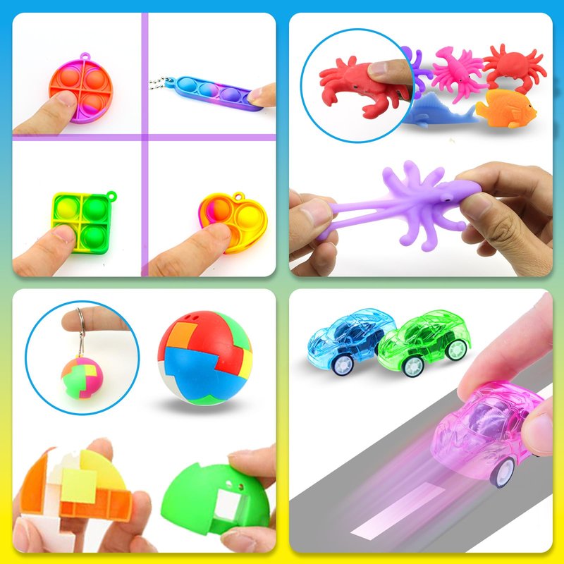 - 😊[Wide Range of Uses] These fun filled party favor set toys are carefully selected and are the best way to surprise kids with toys in these sets that can be as carnival prizes,classroom treasure chest prizes,birthday party toy sets,school classroom rewards,carnival prizes,treasure chests, stuffed toys, bag toys,prize box toys,party giveaways,basket stuffers and more. Children will be very happy and grateful when receiving these at the time of parents,friends,classmates,teachers.