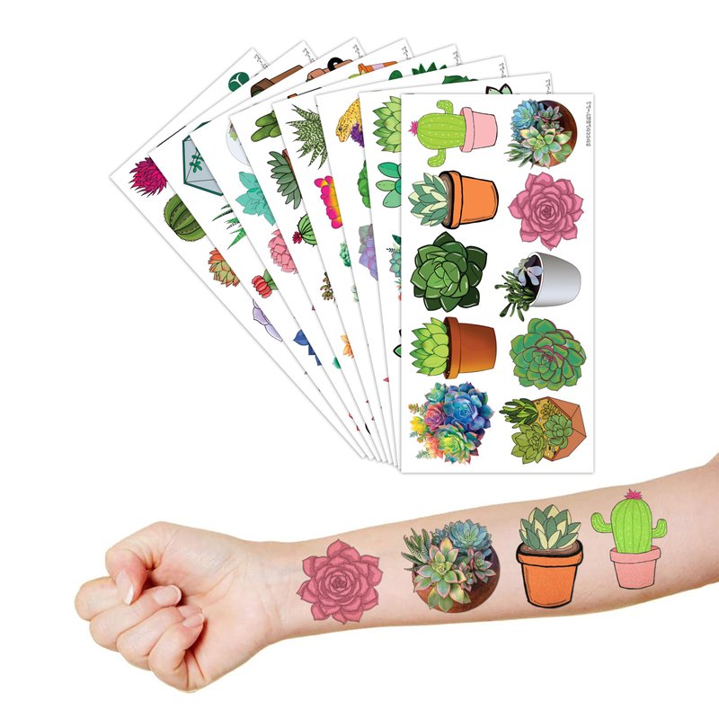 - 🌵FUN GIFT IDEAS FOR SUCCULENT BIRTHDAY PARTY DECORATIONS SUPPLIES: SUCCULENT TATTOOS perfect for themed party, outdoor parties, birthday parties, school rewards and other party events. SUCCULENT TATTOOS are also interesting and lovely gifts for your children. In addition, they help children recognize plants and succulents, closer to plant nature. Complement your unique collection with a succulent plant tattoo!