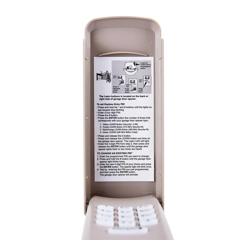 - Attention: please doing the programming steps faster, If you wait too long (a few seconds) between steps it times out and won't program. Attention:Please get close to garage door opener to program keypad! please make sure your garage door opener fully closed first then start to program keypad,otherwsie programming maybe failed. Battery and user manual included.