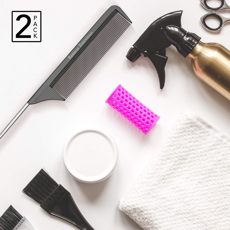 CARBON FIBER AND STAINLESS STEEL PINTAIL COMBS: Includes both metal and carbon fiber 8.8 Inch rattail combs ideal for parting, teasing, back combing, weave, foiling, braiding, sectioning, post styling, hair coloring and more.