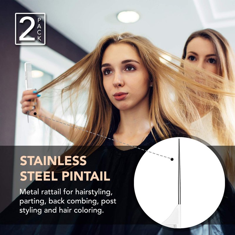 - STAINLESS STEEL PINTAIL: Metal rattail for hairstyling, parting, back combing, post styling, hair coloring, braiding, foiling, extensions, highlighting, sectioning and more!