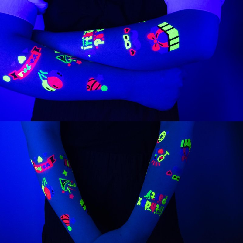 - 【Safe for Kids Fake Tattoos】These neon tattoos accessories for glow party are waterproof, non-toxic and non-allergic. Safe for all skin and all ages over 3 years old. It can last about 3-5 days. The kids can wear to have fun without worries.