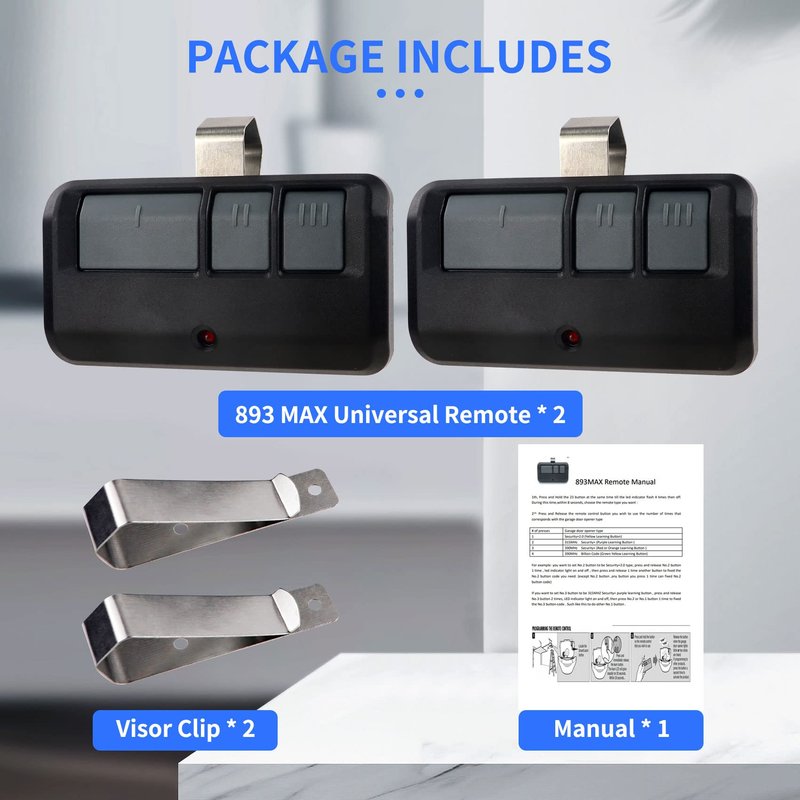 - Easy to Program: 893max remote can replace lift master garage door opener remote,include: 893LM G953EV-P2 890MAX Remote Control Transmitter. A detailed user manual is included to help you get set up in minutes. TIPS: Make sure your garage door opener is fully closed before starting remote programming.