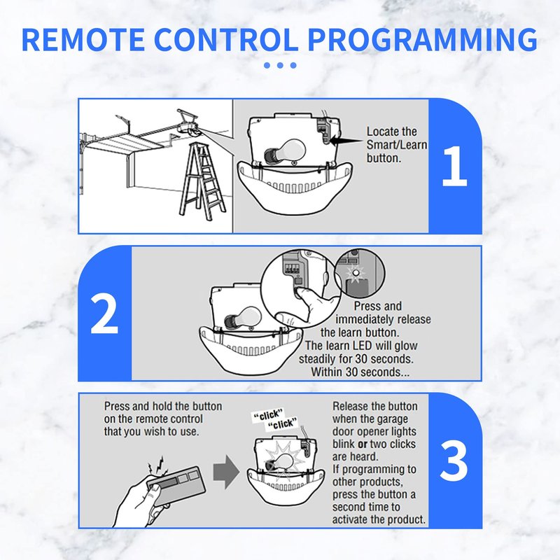- Upgraded design: 893max garage door opener remote have further remote control coverage, stronger signal transmission, working distance up to 100 feet. Convenient and versatile, it is your must-have garage remote control alternative.