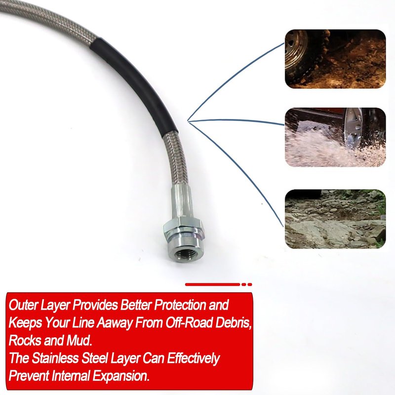 - 🚗outer Layer Provides Better Protection and Keeps Your Line Aaway From Off-Road Debris, Rocks and Mud. The Stainless Steel Layer Can Effectively Prevent Internal Expansion.