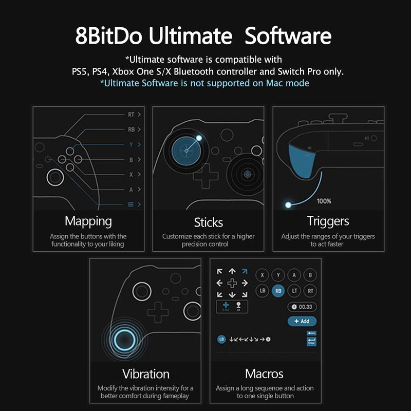 - Controller compatibility - Compatible with 8Bitdo Controllers, Switch Pro, Switch controller for Joycons, PS5, PS4, PS3, Wii Mote, Wii U Pro,Xbox Series X/S,Xbox One Buletooth controller on Windows PCs, Raspberry Pi, laptops, tablets.