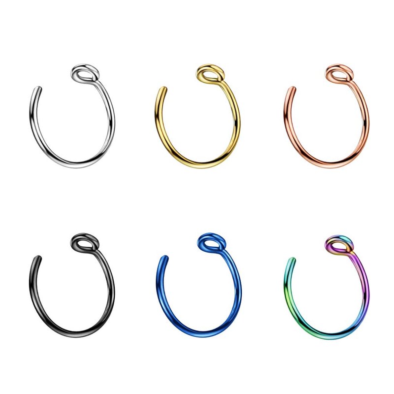 - Fake nose rings set: including 1pc rainbow, 1pc rose gold, 1pc gold, 1pc silver, 1pc dark blue and 1pc black fake nose ring.