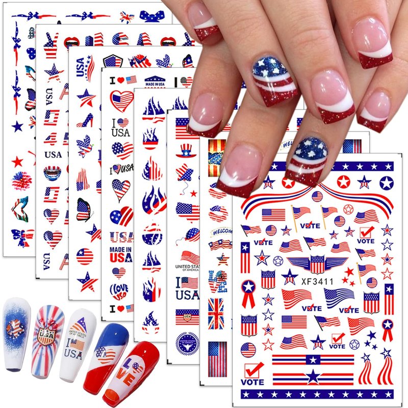 - Fashion Independence Day Stickers Set :You will get 8 sheets USA theme patriotic nail stickers , independence day nail decals are the perfect fashion accessories.Large number of different patterns for you to use and replace in daily life, independence day nail stickers are full of sensuality and elegance, Various charming patterns bring you a different mood.