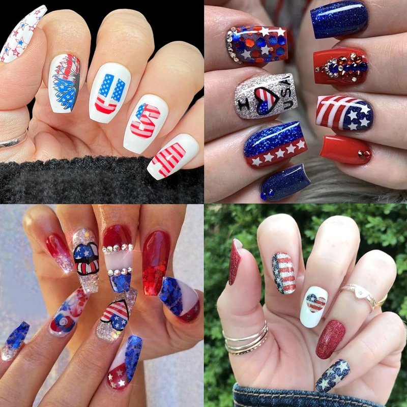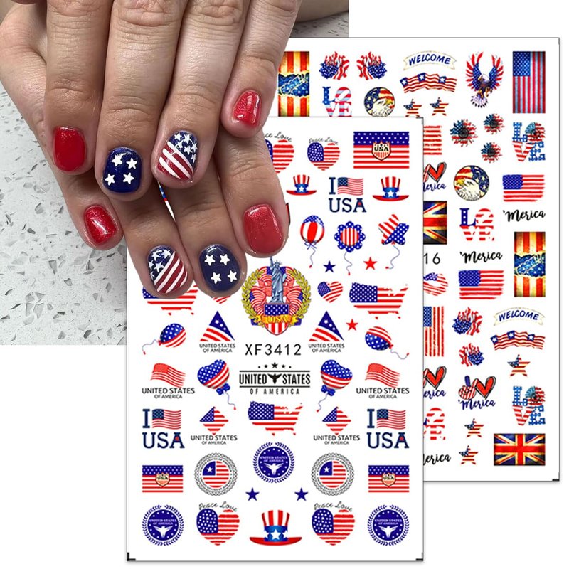 - Wide Occasions: Self-adhesive independence day nail stickers are very suitable for decoration of your fingernails, not only for nail art decorations, 3d patriotic design stickers are also for decoration of your mobile phone cases, greeting cards, body art, etc. Suitable for home use and professional nail salon.