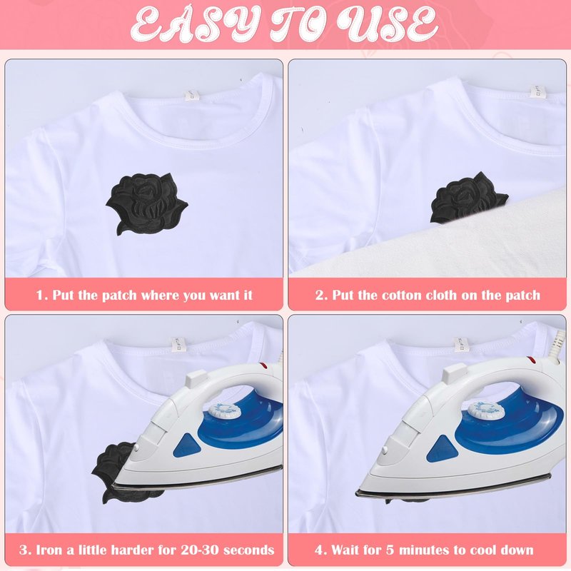 - Easy to use: Our rose flower repair patches comes with adhesive on the back, you can iron directly on most clothes, and rose flower repair patches the heat-sealed backing makes it easy operation.